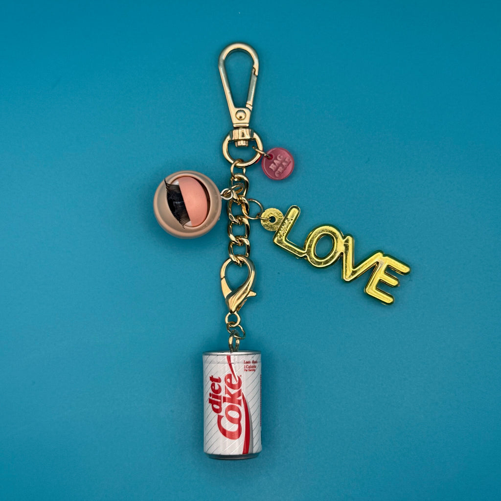 "EYE LOVE DIET COKE" GOLD BAG CHARM CHAIN